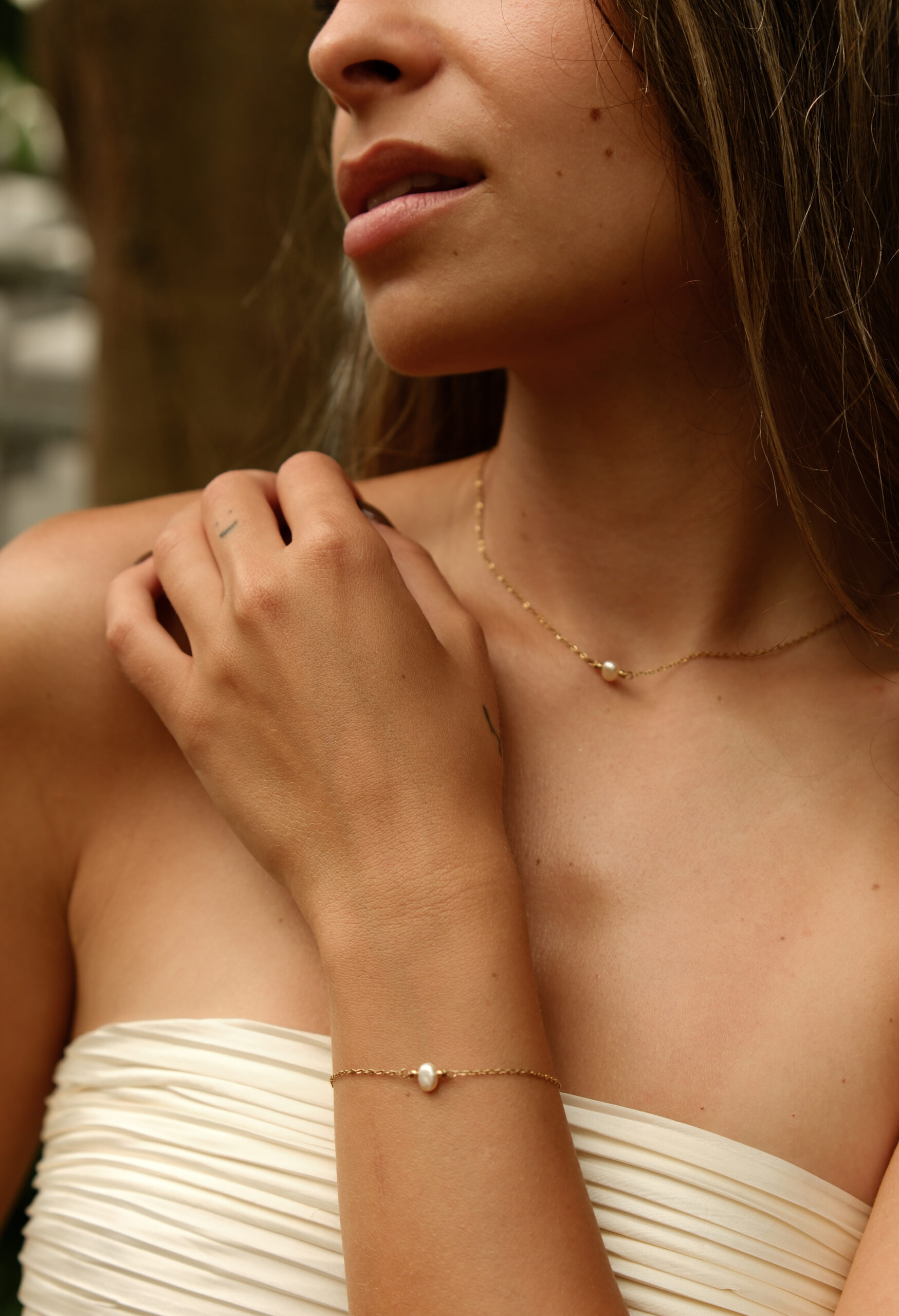 Z týchto perál sme vytvorili limitovanú kolekciu: náhrdelník a dva náramky, ktoré sú ako tri kapitoly jedného príbehu.