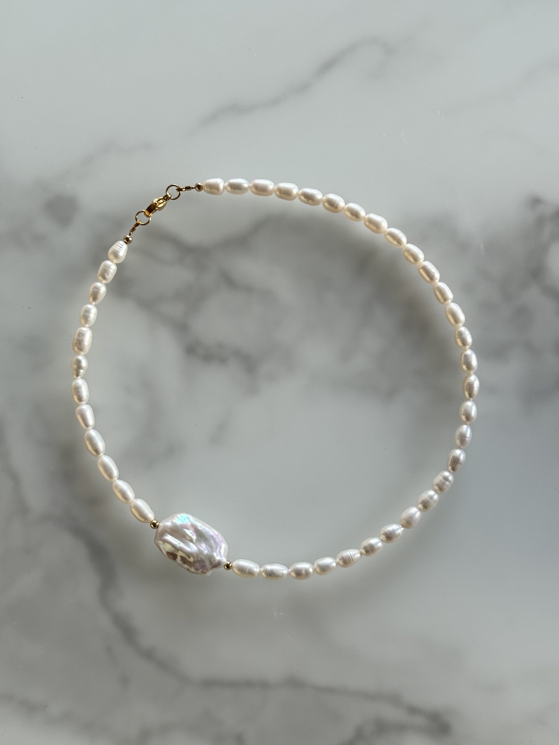 Náhrdelník z riečnych perál a maxi barokovou perlou. Štadartná dĺžka náhrdelníka je 38cm.