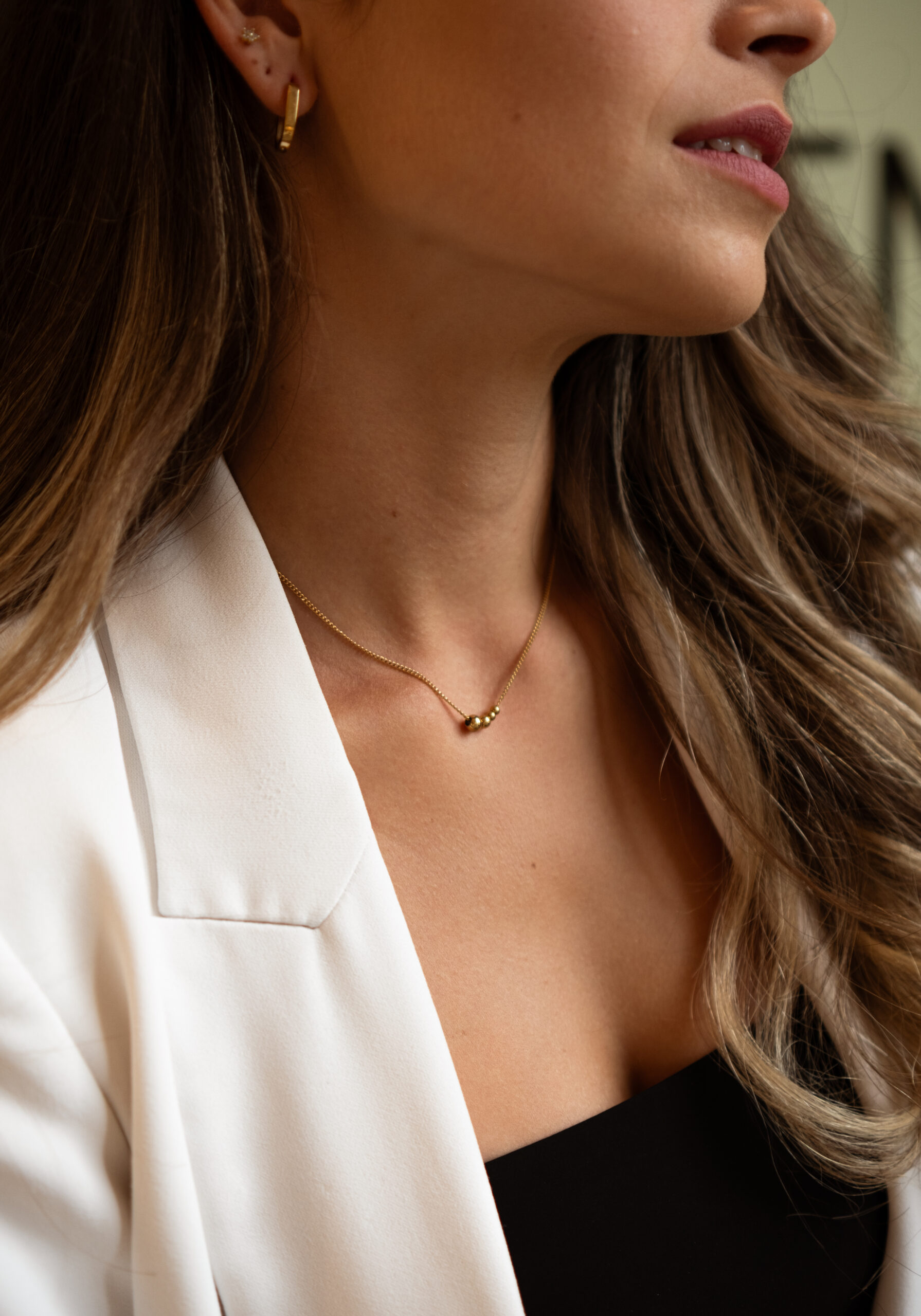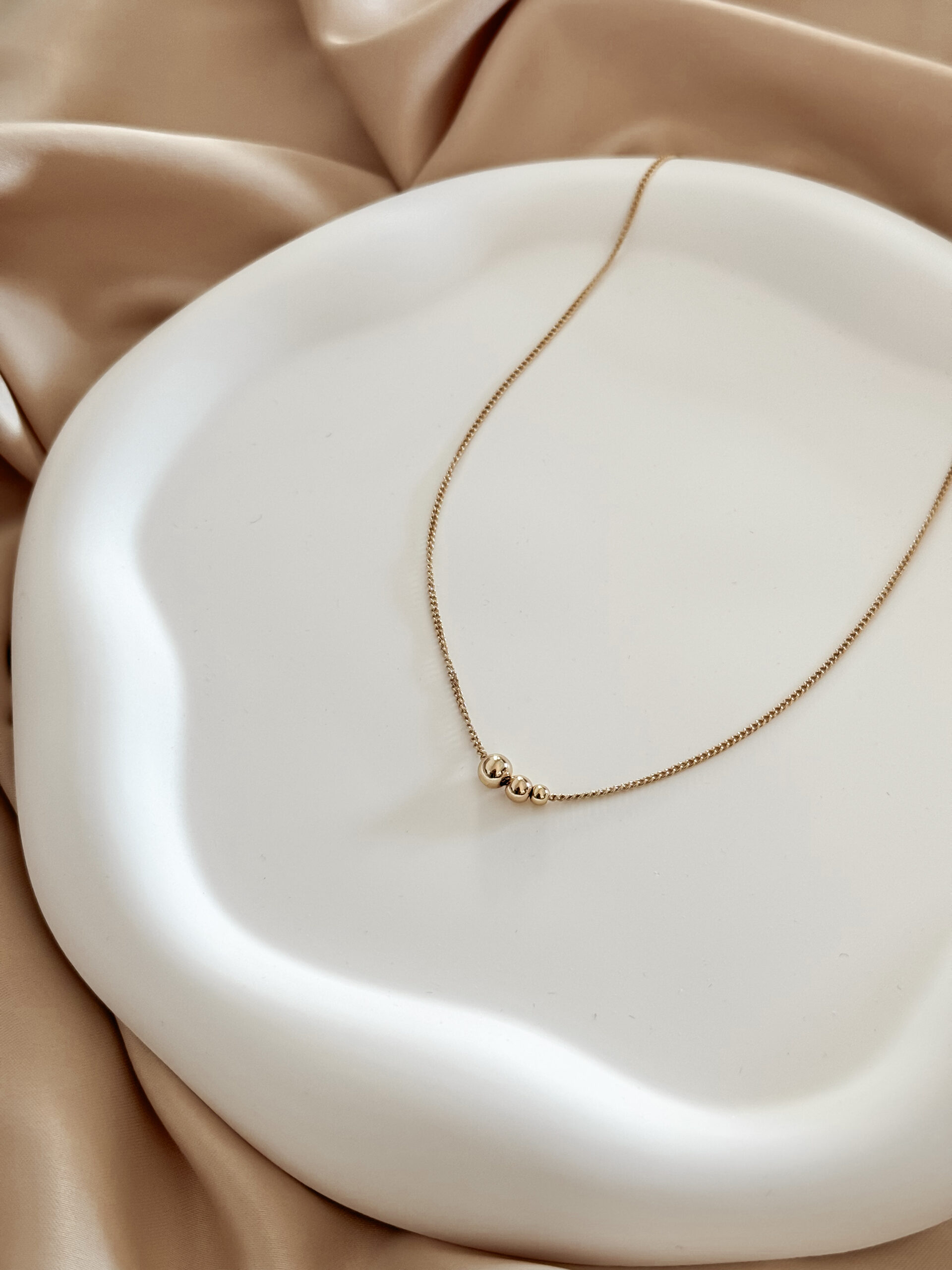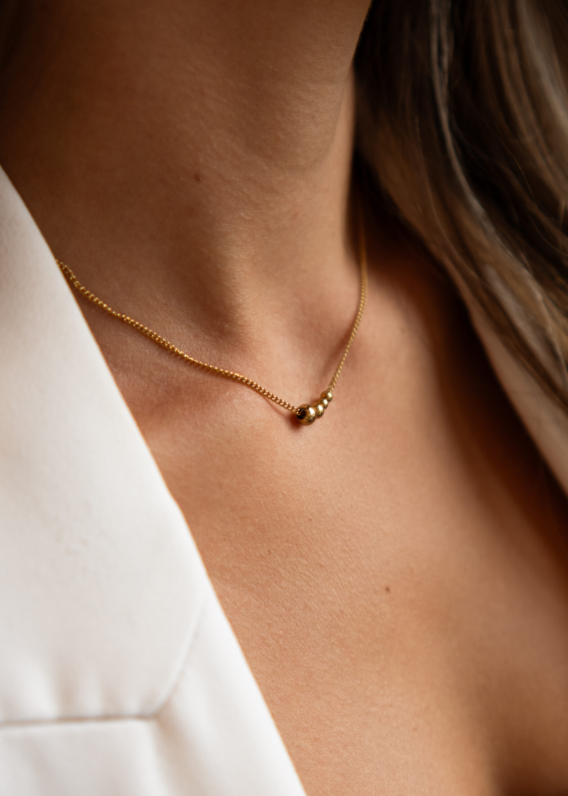 Minimalistický náhrdelník s guličkami, vyjadrujúcimi členov rodiny.