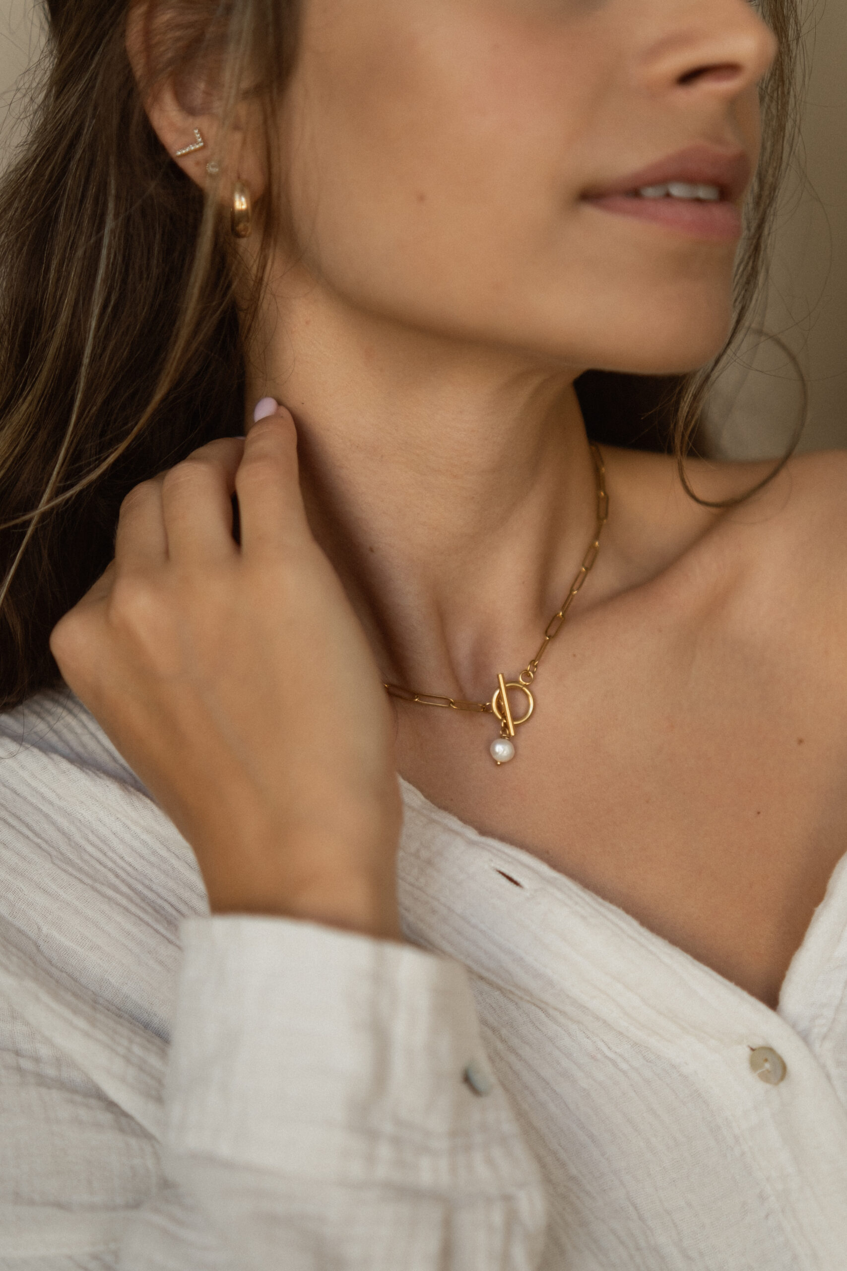 Umeleckým spojením tradičného dizajnu a moderných materiálov Vám prinášame tento nádherný náhrdelník, ktorý sa stane Vašim nenahraditeľným šperkom. Náhrdelník s riečnou perlou a Infinity kruhovým zapínaním z chirurgickej ocele je zárukou nadčasovej elegance a trvanlivosti.