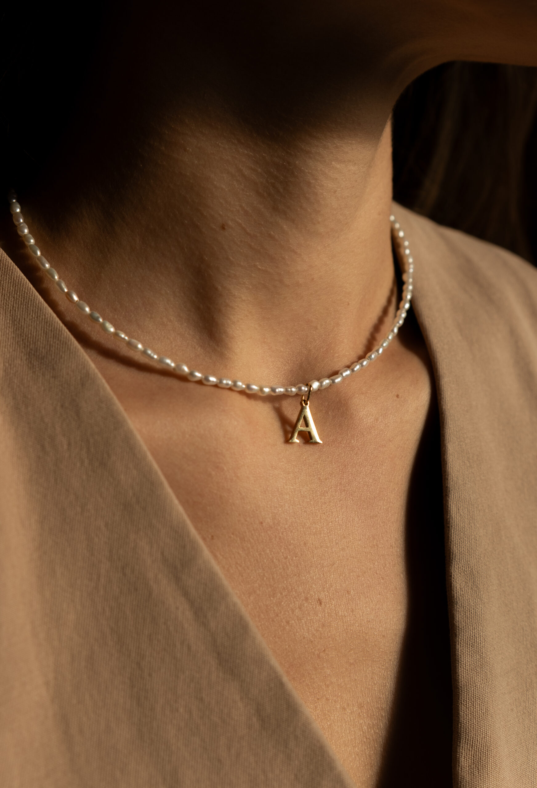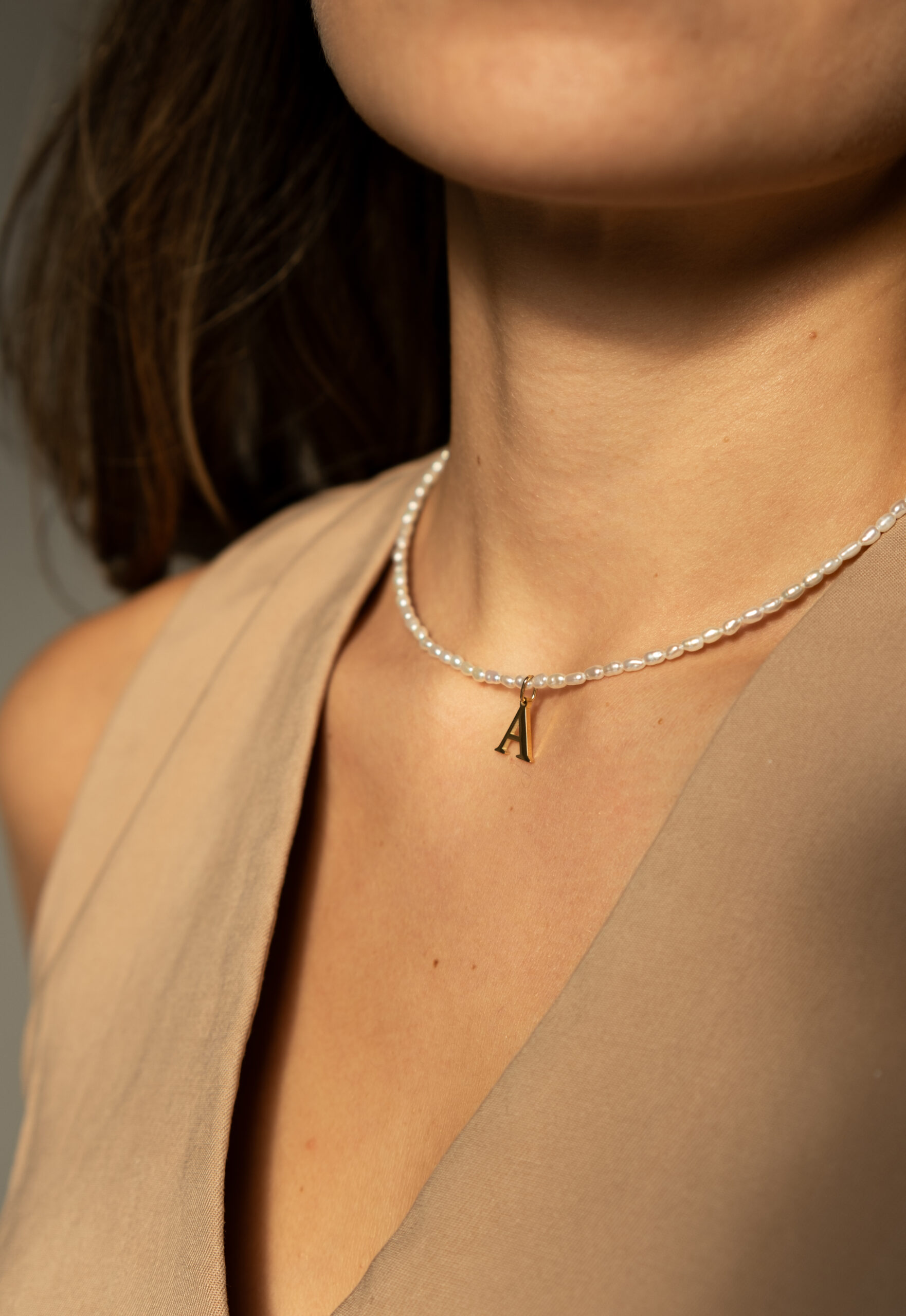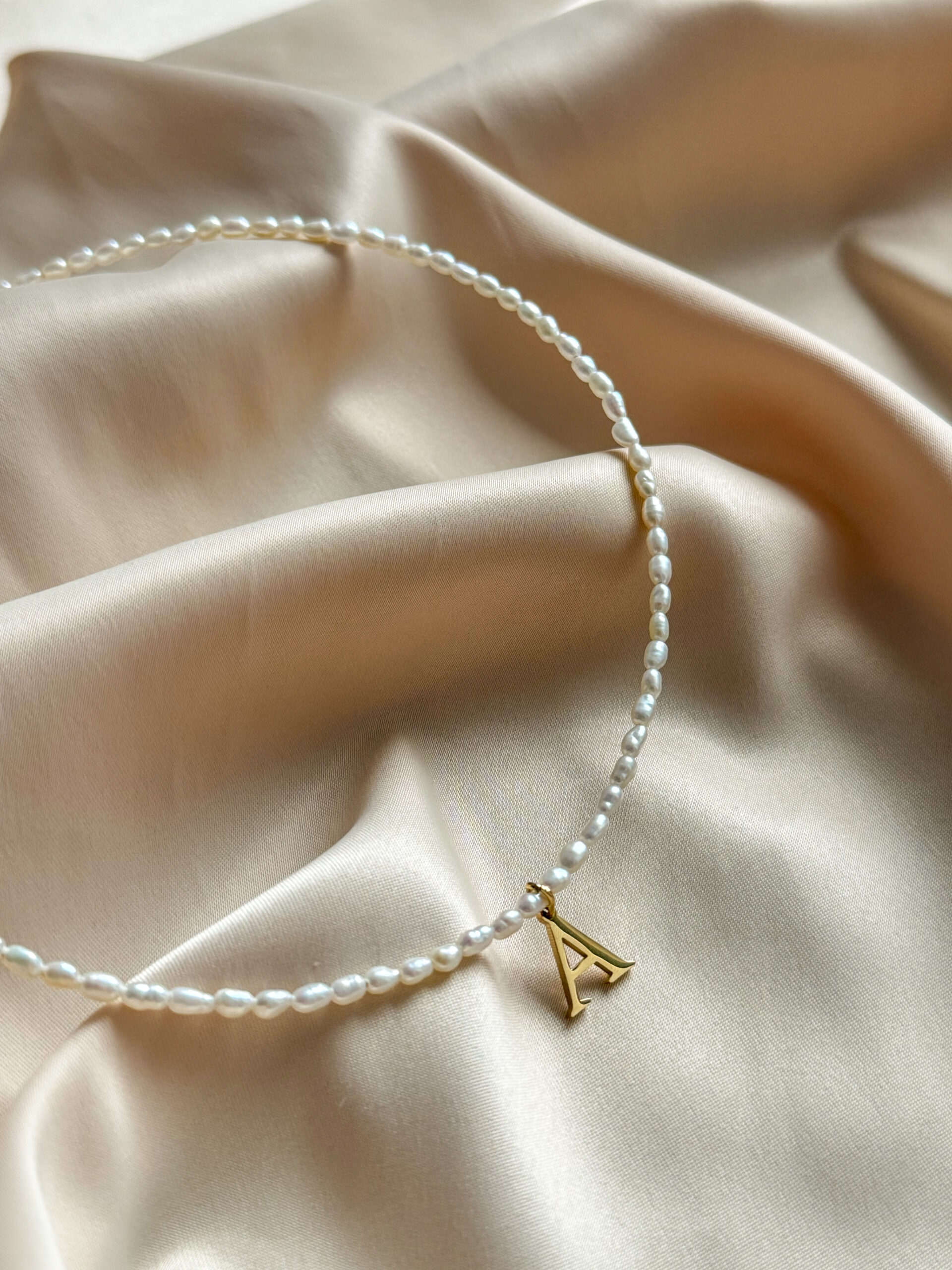 Minimalistický náhrdelník z riečnych perál s ľubovoľnou inciálkou.