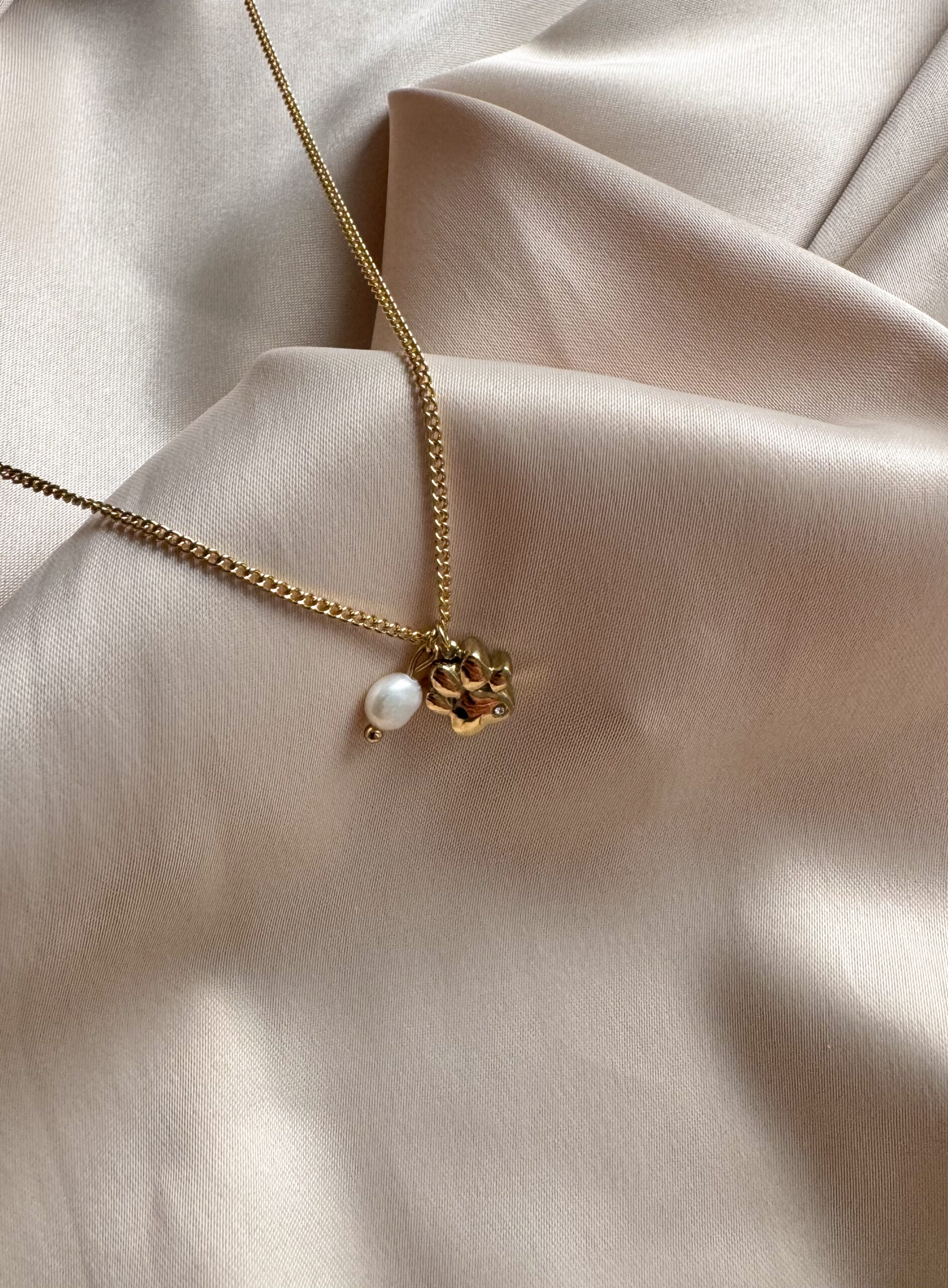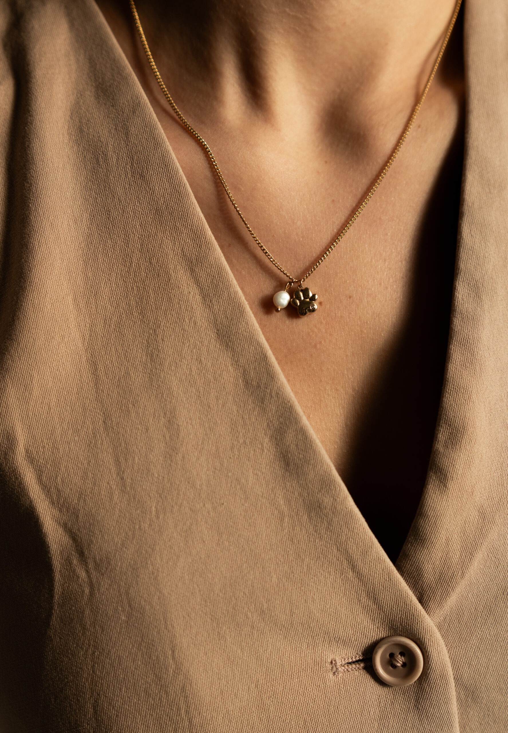 Minimalistický náhrdelník s labkou a riečnou perlou.