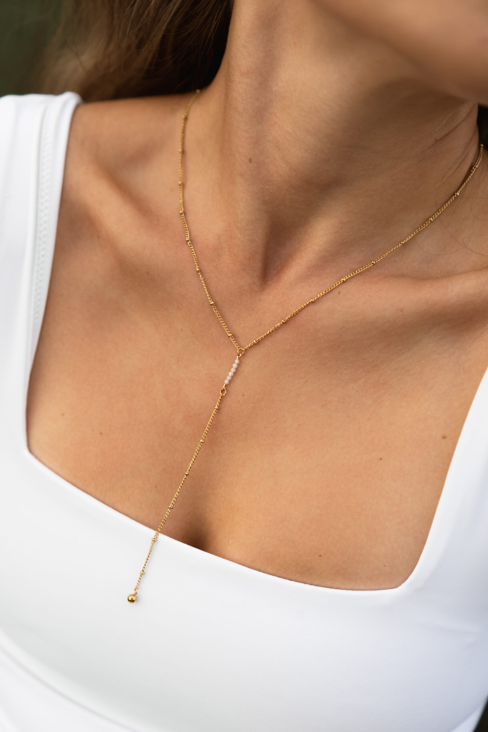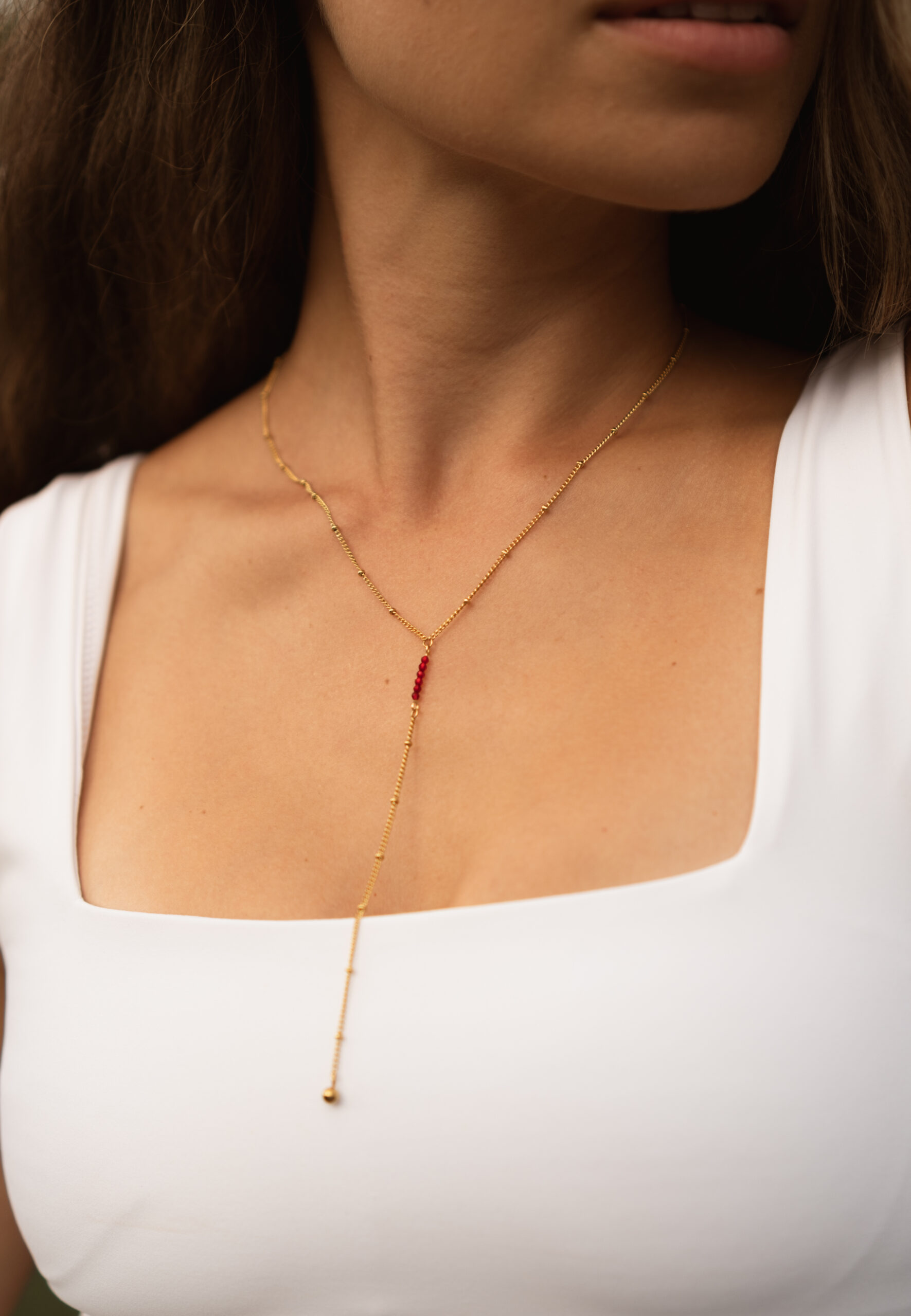Minimalistický náhrdelník Y tvaru doplnený o vašu obľúbenú farbu zirkónov.