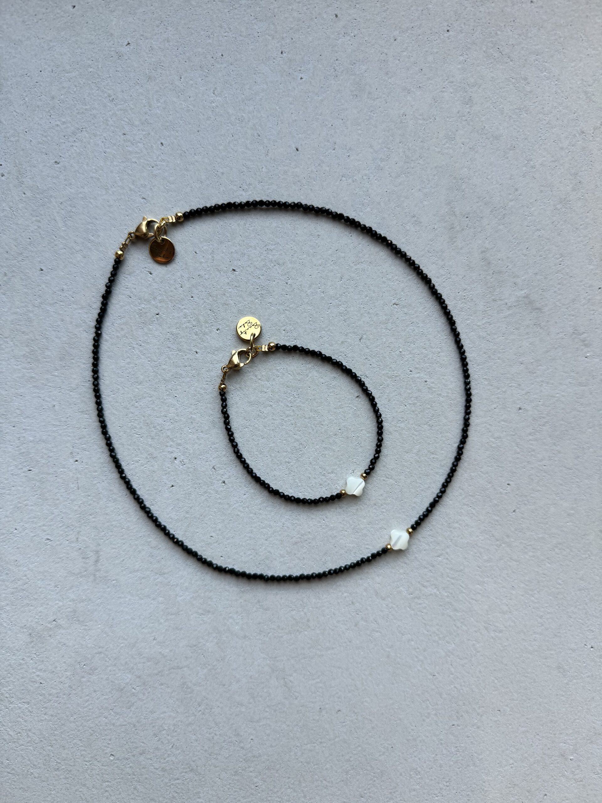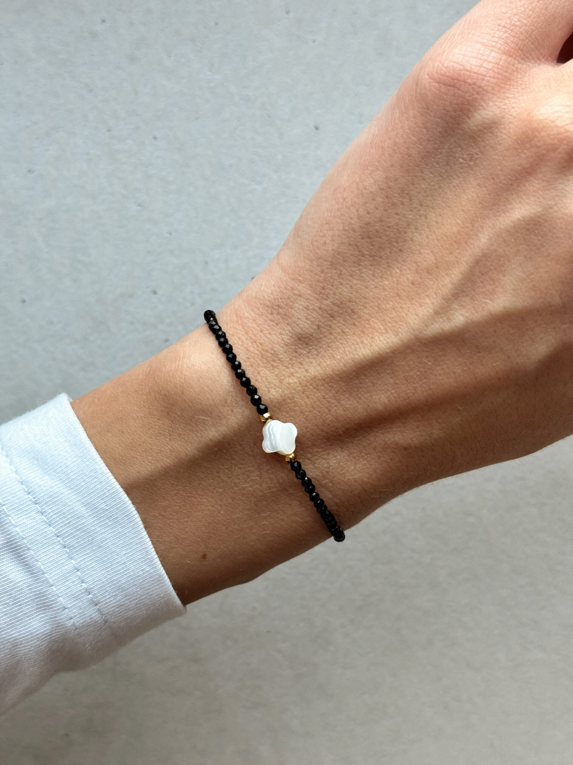 Minimalistický náramok z onyxu a perlete.