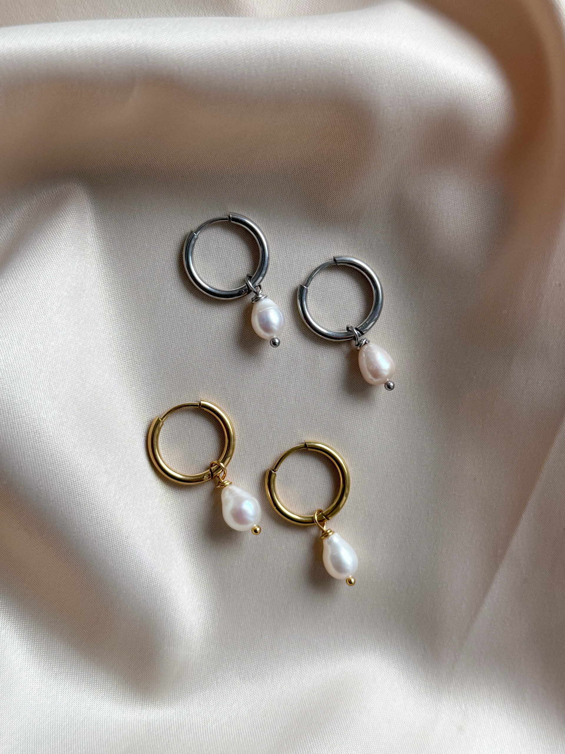 Minimalistické dámske náušnice z riečnych perál. Dostupné v zlatom aj striebornom prevedení.